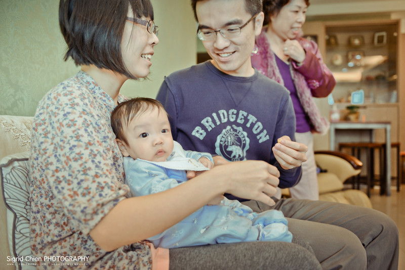 然後一邊唸吉祥話「收涎收乾乾,呼你阿母明年生兒子」之類的..(以前人很重男輕女,現在人就不一樣啦!生男生女都是媽咪的寶貝)