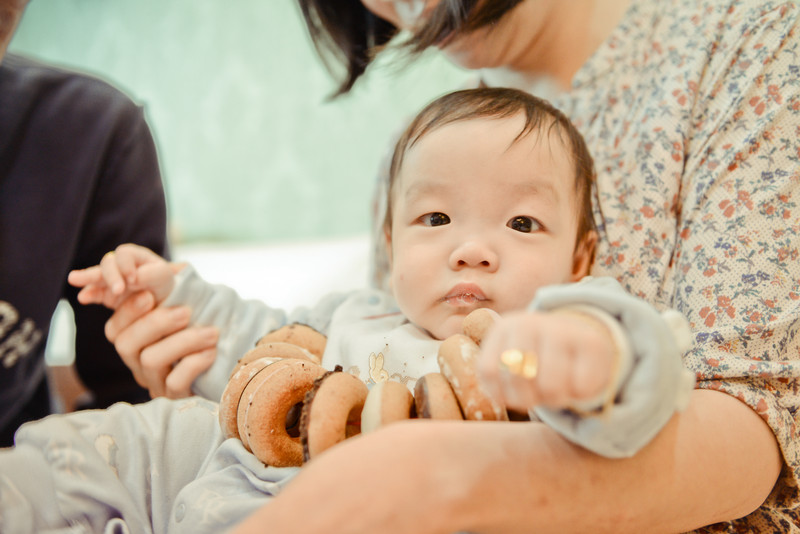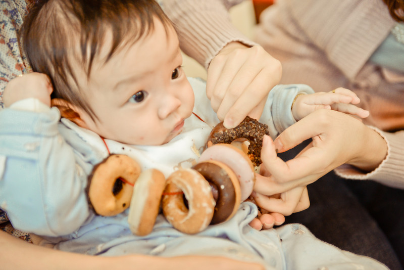 【親子寫真】小樂寶寶四個月收涎記錄。用迷你甜甜圈完成的可愛收涎記