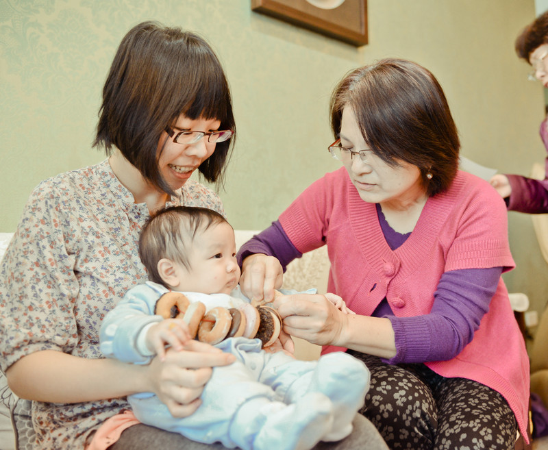 收涎要唸吉祥話,奶奶跟外婆正在練習中