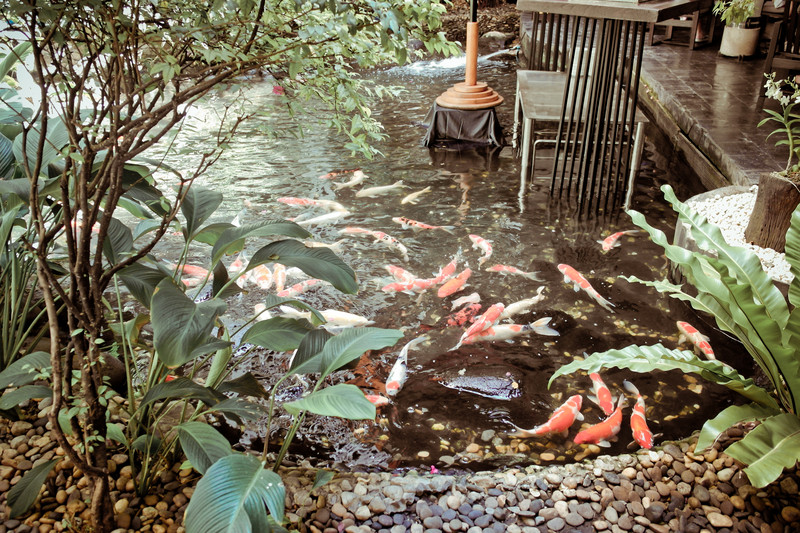 戶外區緊鄰著就是一個水池,搭配上沈穩色系的木頭桌椅,充滿了濃濃的泰式慵懶渡假風情
