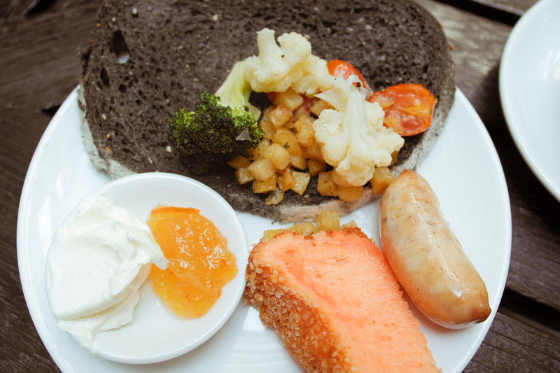 我自己偏愛的早餐其實是西式的,因此我拿的食物幾本上都是麵包、奶油、蔬菜等等 SCN(近拍)模式 f4 ISO400