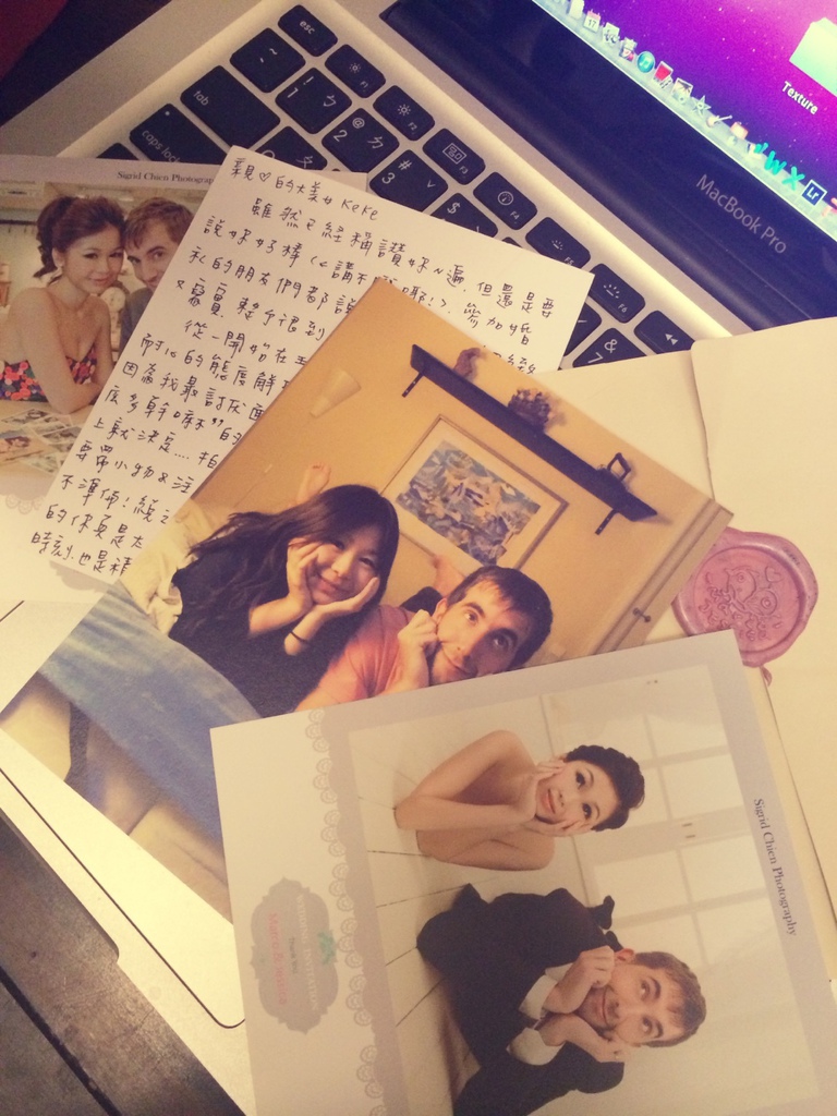 上週一個週五早晨,收到新娘Jessica寄給我的卡片&喜帖,還有我替她印製的拍立得式謝卡,Jessica寫了滿滿的一張信給我,看到真的好感動!