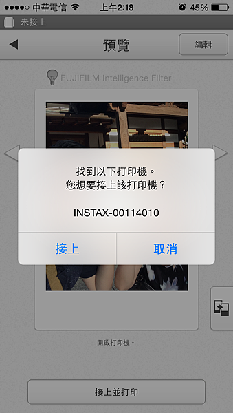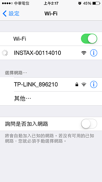 3. 連接上富士FUJIFILM馬上看 instax SHARE SP-1 並開啟wifi