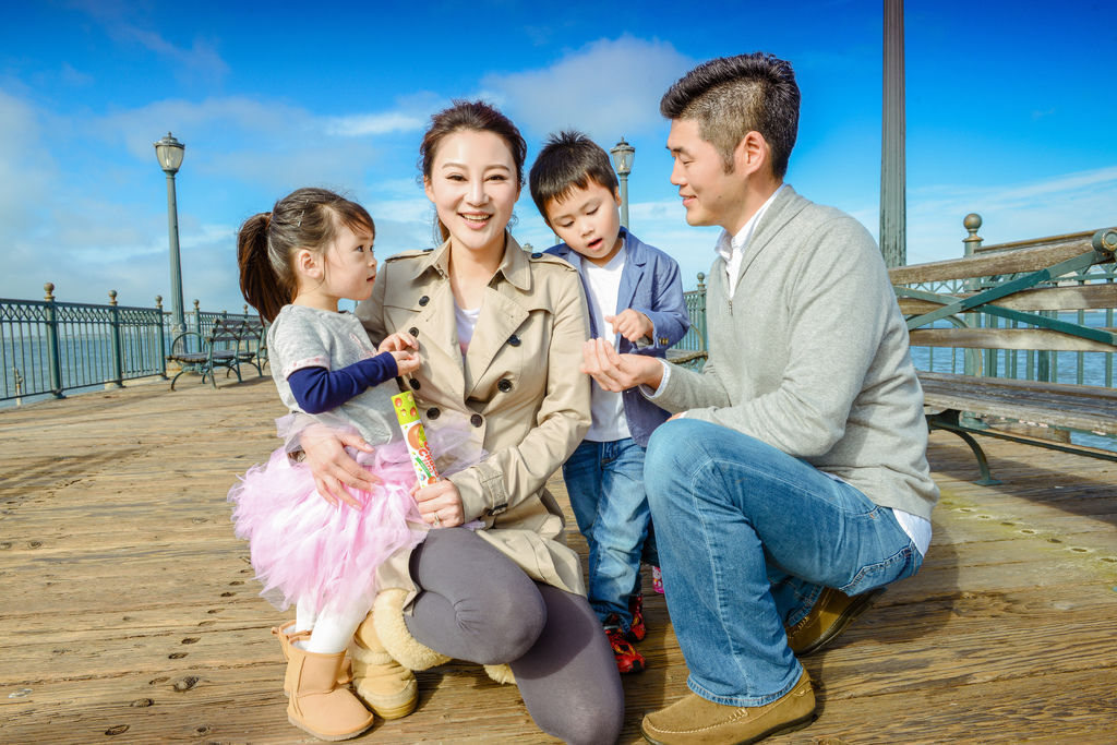 彷彿從雜誌裡走出來一般的夢幻家庭,沐浴在舊金山的陽光底下,一家人笑得好幸福...