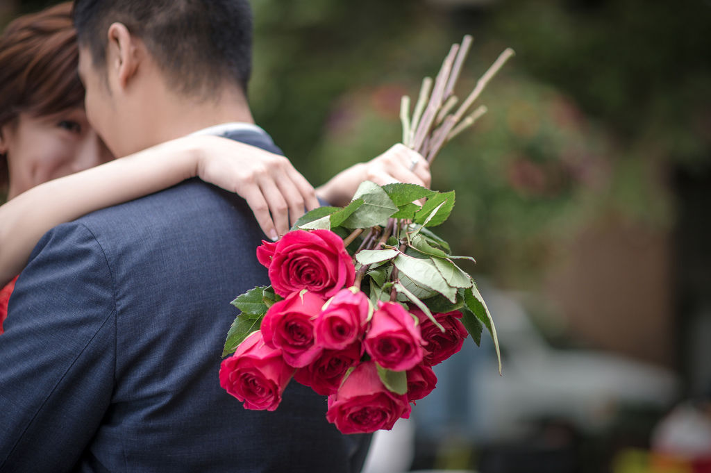 更驚喜的是在我們拍攝的過程中,有位女士拿了一大把紅玫瑰送給文惠