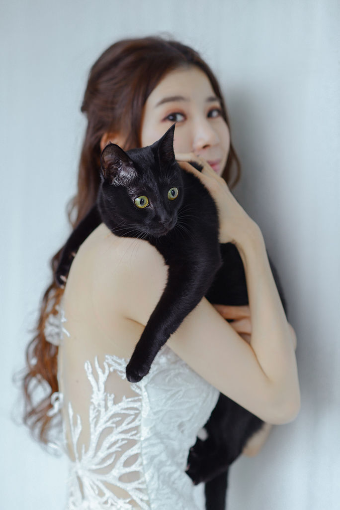 愛貓的新娘Nora說黑貓咪姆就像自己的女兒一樣,重要