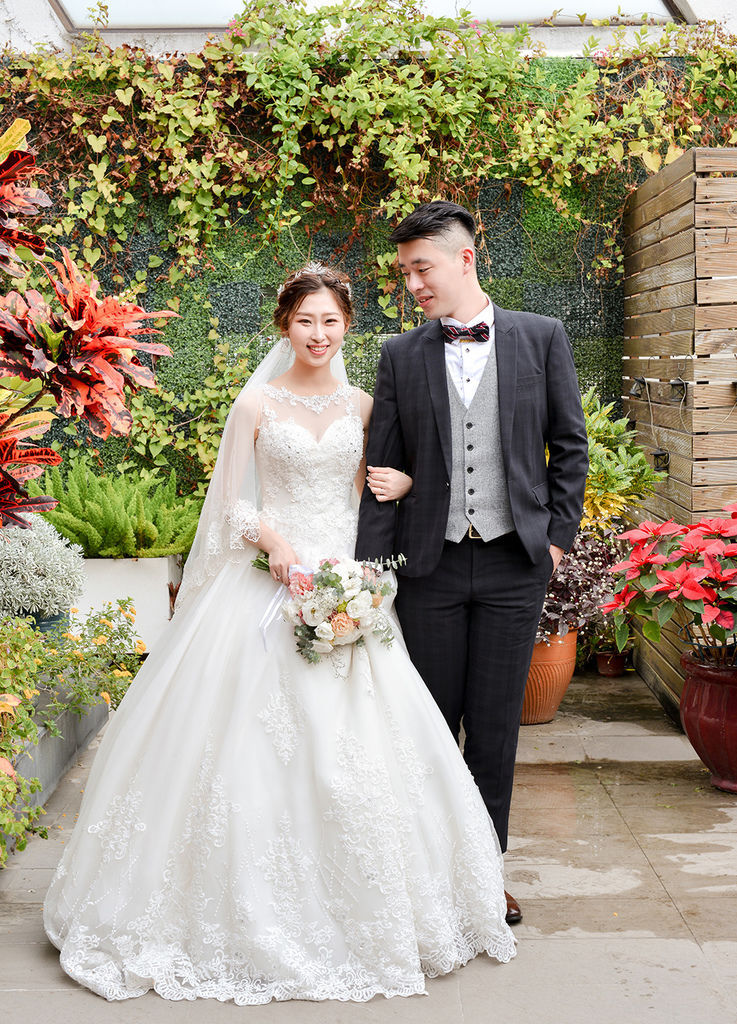 而在兆品的午宴,趁著宴客席間的短短空檔與天色正美,來場午後的浪漫類婚紗約會,是攝影師要獻給新人的美麗。