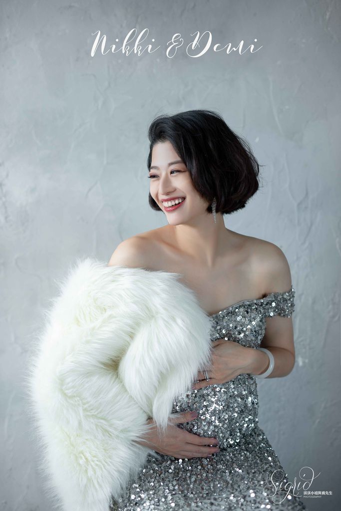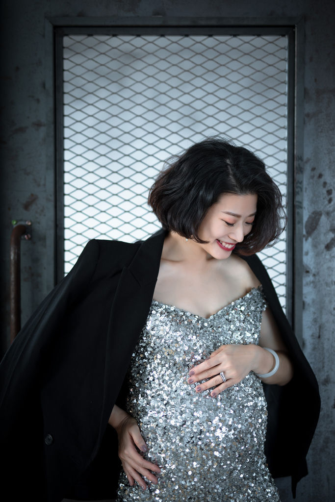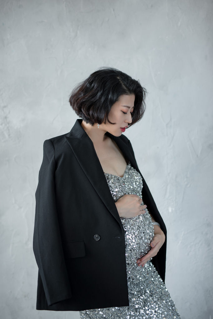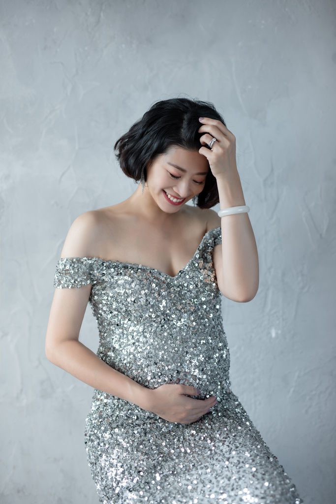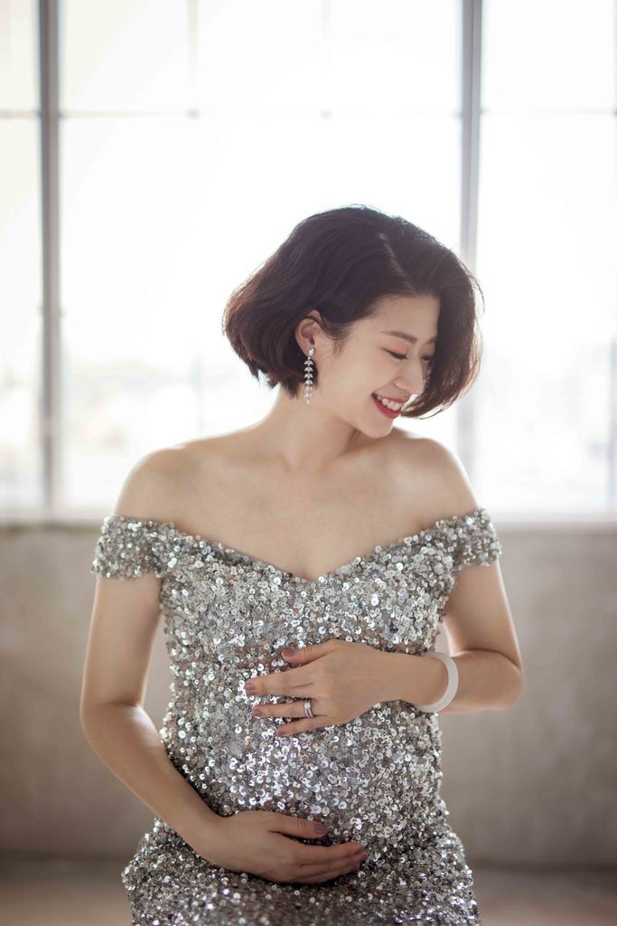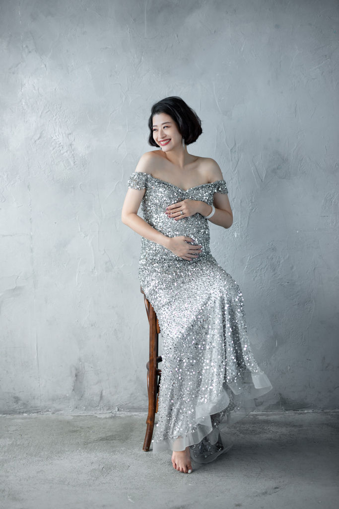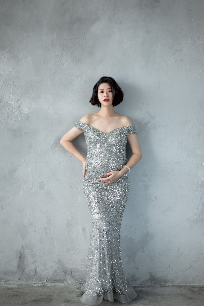 超喜歡這套禮服與整體造型,記得小閃說自己很愛銀色,琪琪都記在心上,孕拍一定要給她一套小閃款啊~