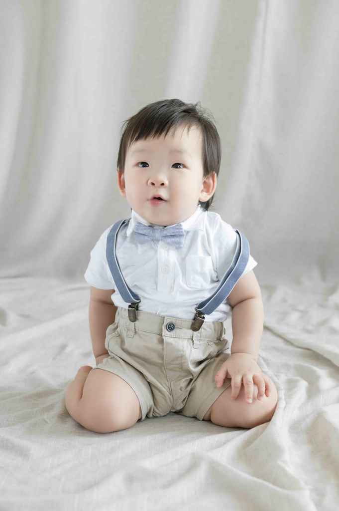 攝影師阿姨是邊拍邊笑,希望兔寶滿週歲時也能跟這個寶寶一樣拍照都笑咪咪的。
