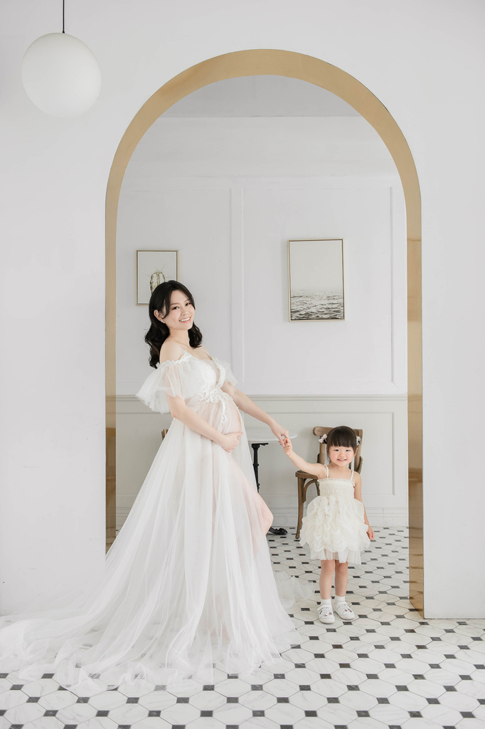 除了當年婚禮上的亮眼俏麗,現在的妳更增添了為人母的溫柔韻味