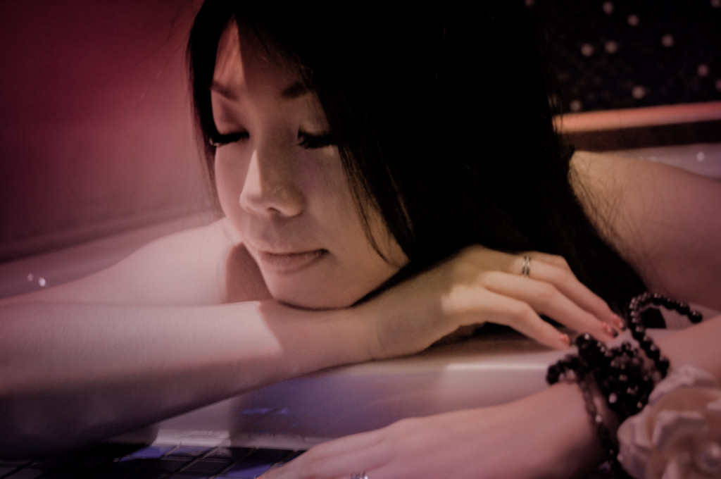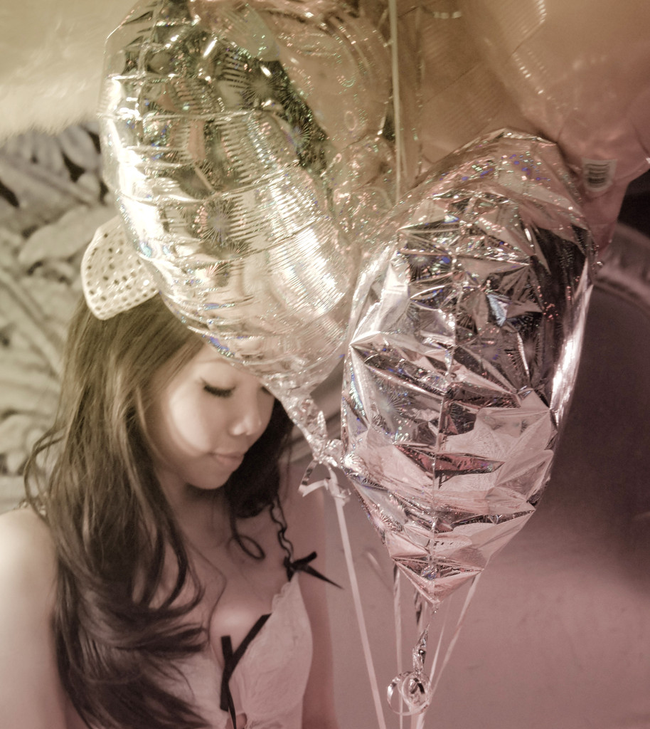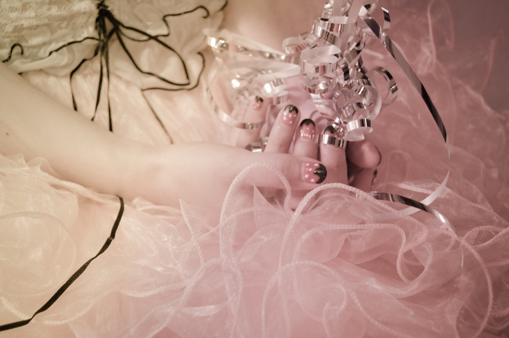 當天準備了華麗的蜜桃色蓬蓬裙,搽上心愛的Macaron糖霜唇膏,躺在鬆軟的銀白色床上